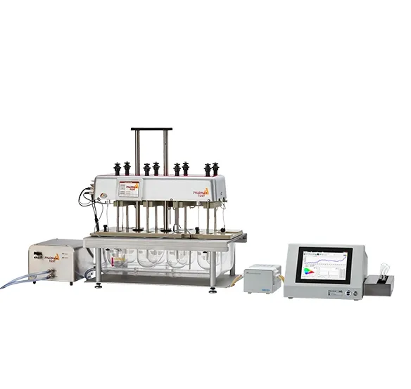 Для автоматизации процесса используется любой тестер растворения серии PTWS, совмещенный с перистальтическим IPC или шприцевым PT-SP насосом и спектрофотометром UV / VIS с проточной кюветой. Спектрофотометр в реальном времени определяет растворение образцов, результаты протоколируются с помощью программного обеспечения WinDiss ARGUS.