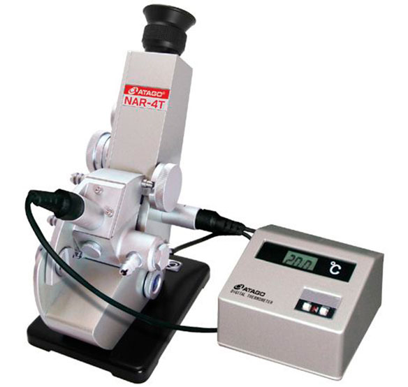 Модель NAR-4T специально разработана для образцов с высоким показателем преломления, таких как полимерные плёнки. Может комплектоваться внешней водяной баней - циркулятором. Рефрактометр оснащен цифровым блоком, который отображает температуру призмы. Также у рефрактометра имеется яркая подсветка шкалы. NAR-4T - это удобный и надежный в эксплуатации рефрактометр с долгим сроком службы.