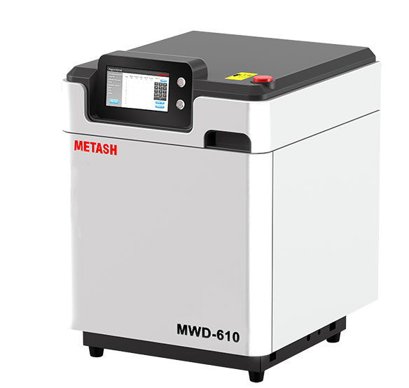 Принцип работы прибора – нагревание образцов, находящихся в герметичном контейнере, микроволновым излучением при высокой температуре и давлении до полного разложения образца. Микроволновая система разложения в закрытом сосуде MWD-610 является наиболее безопасным и удобным способом подготовки образца для анализа атомной абсорбцией, атомно-эмиссионной спектроскопией с индуктивно-связанной плазмой (АЭС-ИСП), атомно-эмиссионной спектроскопией с микроволновой плазмой, оптико-эмиссионной спектроскопией с индуктивно-связанной плазмой, высокоэффективной жидкостной хроматографией.