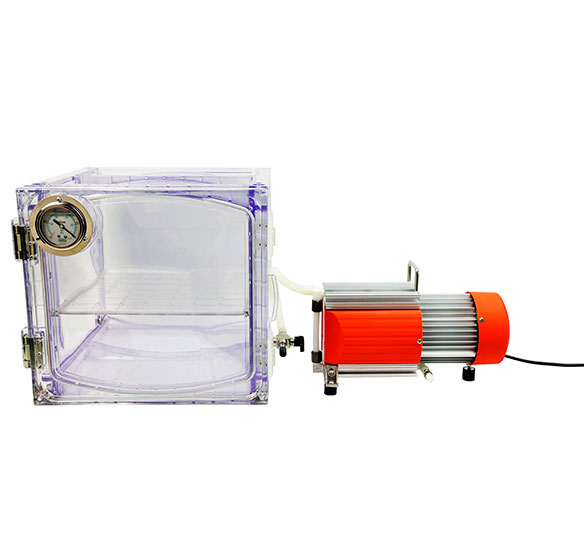 Вакуумная камера из ПК-пластика представляет собой прозрачный герметичный контейнер. Внутреннее отрицательное давление создаётся с помощью вакуумного насоса. Доступны два варианта исполнения: прозрачное или с защитой от ультрафиолетового излучения. Эксикатор широко используется в лабораториях, электронной и медицинской промышленности и идеально подходит для применения в условиях среднего и низкого вакуума (≤ 133 Па).