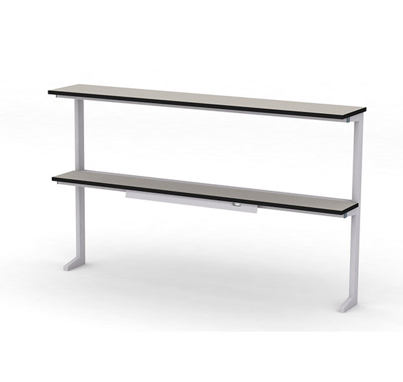 Сервисная надстройка пристенного типа представляет собой надежное и функциональное решение для организации рабочего пространства. Основу конструкции составляет прочный сварной каркас из стальных прямоугольных труб с антикоррозийным эпокси-полиэфирным покрытием светло-серого цвета в текстуре шагрень, обеспечивающим долговечность и устойчивость к механическим воздействиям.