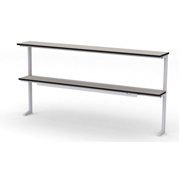 Сервисная надстройка пристенного типа представляет собой надежное и функциональное решение для организации рабочего пространства. Основу конструкции составляет прочный сварной каркас из стальных прямоугольных труб с антикоррозийным эпокси-полиэфирным покрытием светло-серого цвета в текстуре шагрень, обеспечивающим долговечность и устойчивость к механическим воздействиям.