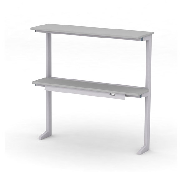 Сервисная надстройка пристенного типа представляет собой надежное и функциональное решение для организации рабочего пространства. Основу конструкции составляет прочный сварной каркас из стальных прямоугольных труб, обработанный износостойким эпокси-полиэфирным покрытием светло-серого цвета с текстурой шагрень, что обеспечивает долговечность использования и устойчивость к механическим воздействиям.
