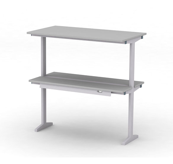 Сервисная надстройка островного типа представляет собой функциональное решение для организации рабочего пространства. Конструкция основана на прочном сварном каркасе из стальных прямоугольных труб, обработанном износостойким эпокси-полиэфирным покрытием светло-серого цвета с текстурой шагрень, что обеспечивает надежную защиту от коррозии и механических повреждений.