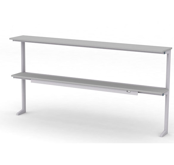 Сервисная надстройка пристенного типа представляет собой функциональное решение для организации рабочего пространства. Ее основу составляет прочный сварной каркас из стальных прямоугольных труб с антикоррозийным эпокси-полиэфирным покрытием светло-серого цвета в текстуре шагрень.