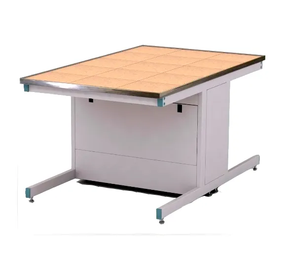 Материал рабочей поверхности стола - керамогранит (плитка 600х600 мм, плитка 300х300мм). Обладает высокой стойкостью к химическим, термическим и механическим воздействиям. По устойчивости к воздействию химических веществ значительно превосходит ламинатные покрытия. Стойкий к длительному воздействию высоких температур. Поверхность обрамлена бортиком из нержавеющей стали.