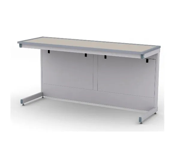 Стол оборудован лицевыми экранами, изготовленными из листовой стали и окрашенных эпокси-полиэфирной порошковой краской светло-серого цвета. Съемный лицевой экран, обеспечивает доступ к необходимым коммуникациям и оборудован защелками.