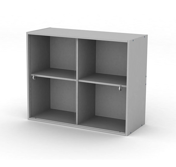 Вариант исполнения: две раздвижные дверки из стекла, вертикальная перегородка, четыри отделения, две регулируемые полки.