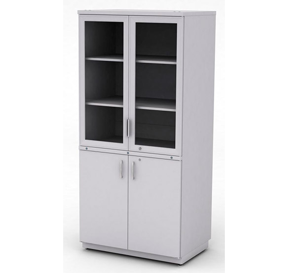 Шкаф для посуды представляет собой разборную конструкцию, изготовленную из листовой стали окрашенной эпокси-полиэфирной порошковой краской светло-серого цвета с текстурой шагрень.