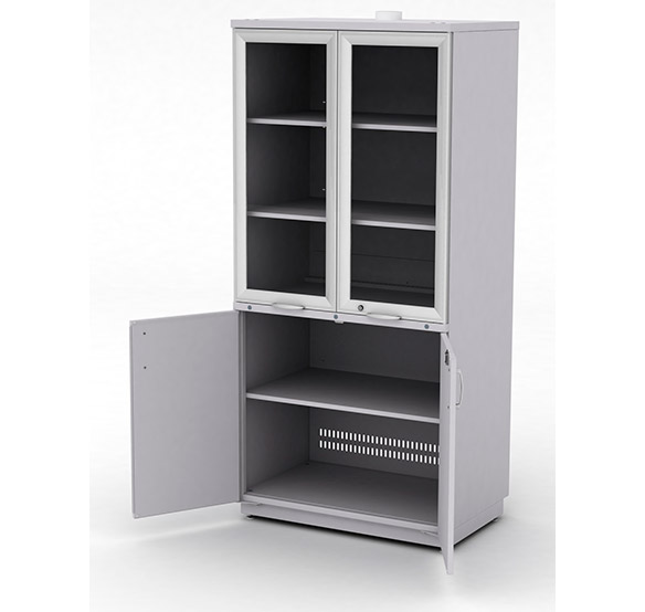 Шкаф для реактивов имеет разборную конструкцию, изготовленную из листовой стали окрашенной эпокси-полиэфирной порошковой краской светло-серого цвета с текстурой шагрень.