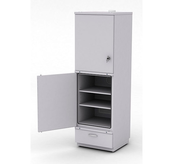 Шкаф для реактивов имеет разборную конструкцию, изготовленную из листовой стали окрашенной эпокси-полиэфирной порошковой краской светло-серого цвета с текстурой шагрень.