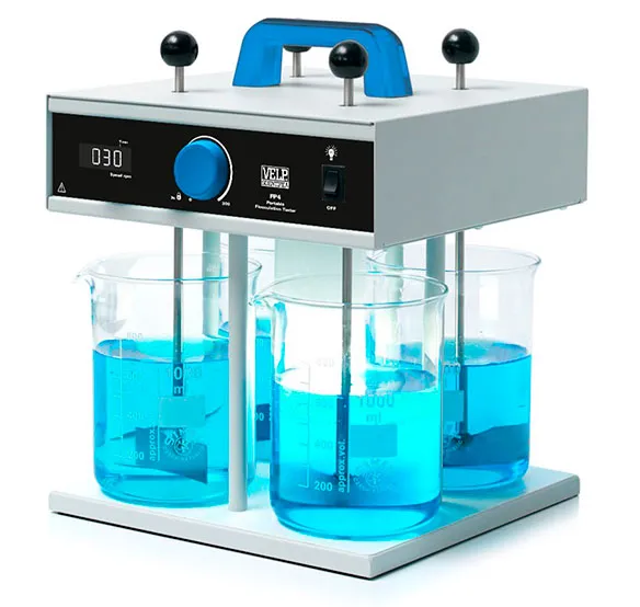Цифровой портативный флокулятор FP4 с регулируемой скоростью перемешивания, мощным бесщеточным двигателем, центральной системой освещения и практичной ручкой специально разработан для проведения испытаний и очистки в режиме реального времени в различных условиях, как в лаборатории, так и на месте. FP4 можно подключить к аккумулятору или автомобильному прикуривателю (12 В).
