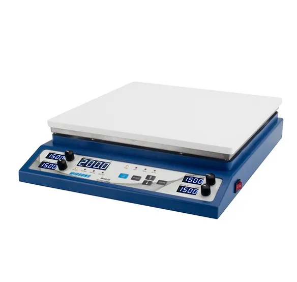 - Химически стойкая рабочая поверхность из алюминия с керамическим покрытием обеспечивает равномерный нагрев образцов.