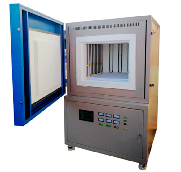Нагревательные элементы в этой печи выполнены из дисилицида молибдена, а изоляция состоит из трёх слоёв волокнистой керамики
