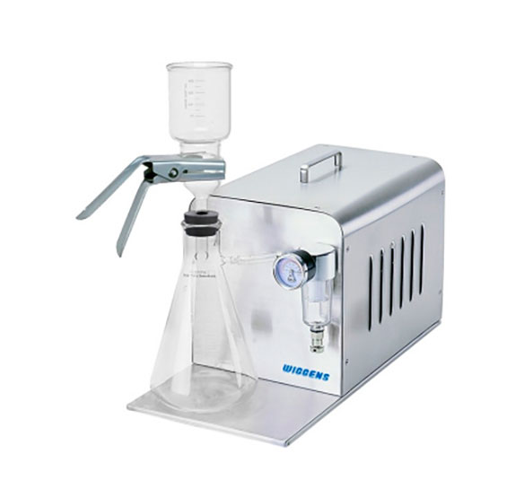 Компактная и портативная система вакуумной фильтрации VF203A сочетает в себе безмасляный вакуумный насос, не требующий технического обслуживания, с комплектом для фильтрации из стекла VF6