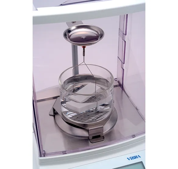 - Комплект для измерения плотности подходит для работы с твердыми, жидкими, пористыми и вязкими веществами.