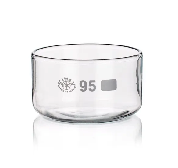Чашка кристаллизационная без носика изготовлена из боросиликатного стекла, устойчивого к воздействию высоких температур и агрессивных химических веществ.