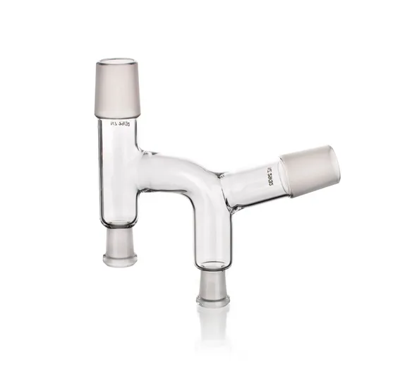 Насадка Кляйзена изготовлена из боросиликатного стекла, устойчивого к воздействию высоких температур и агрессивных химических веществ. Представляет собой 4 пришлифованные взаимозаменяемых конуса, два типа «керн» и два типа «муфта». Насадка используется для подключения к реакторам и установкам термометра, холодильника, воронки и других приборов.