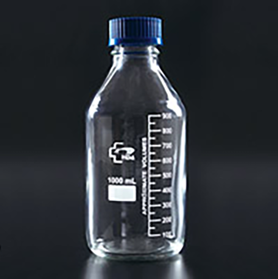 - Банка с винтовой пластиковой пробкой и сливным кольцом, с градуировкой, светлое боросиликатное стекло Boro 3.3, 1000 мл, 1 шт/уп